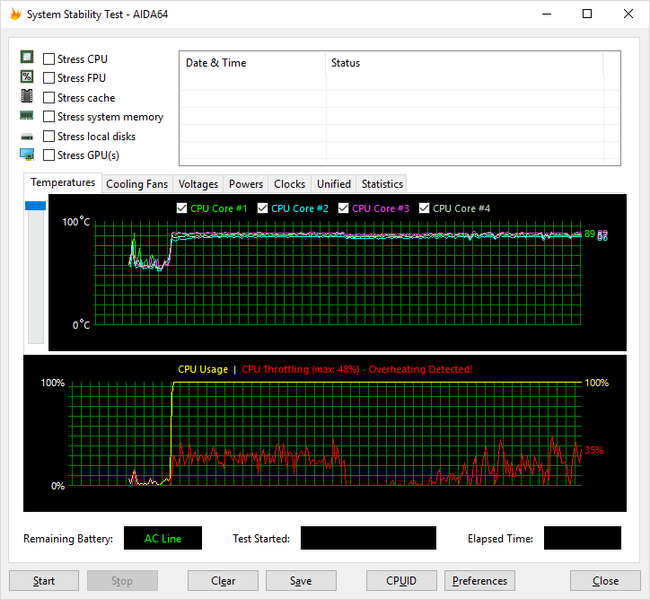 Температура ядер достигает критического значения в 90 °C, а мощность энергопотребления процессора снижается до 15 Вт.