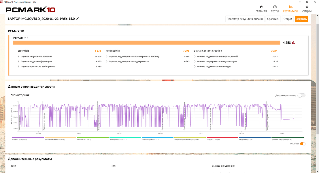 Сначала мы проверили Asus ZenBook Duo UX481F с подключенным адаптером питания.