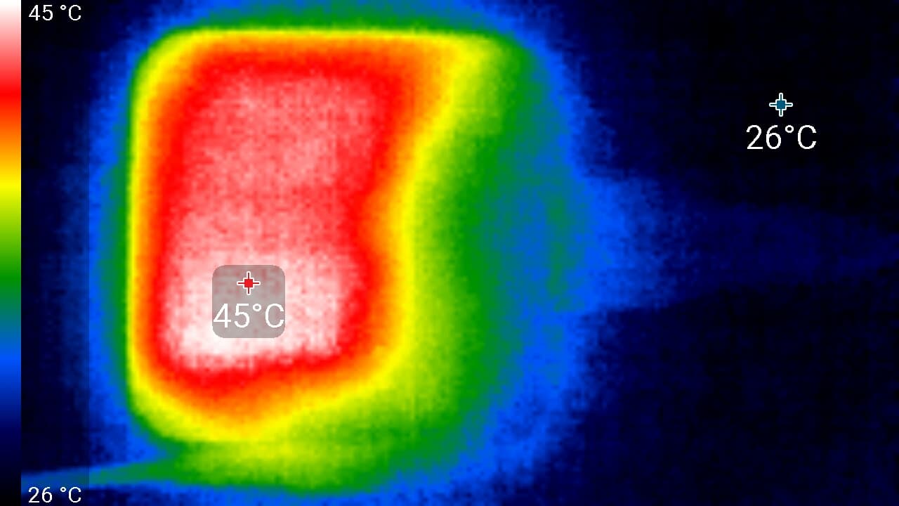 Под максимальной нагрузкой работать с клавиатурой комфортно, так как в данном случае места под запястьями по определению не греются. Нагрев снизу относительно высокий, но если держать ноутбук на коленях, то выступающее снизу ребро создает воздушный промежуток между днищем ноутбука и коленями, поэтому нагрев ощущается несильно. Блок питания греется не очень сильно, но при долговременной работе с высокой нагрузкой лучше следить, чтобы он не был чем-то накрыт. В целом, серьезных именно эргономических проблем, вызванных нагревом, у ноутбука нет.