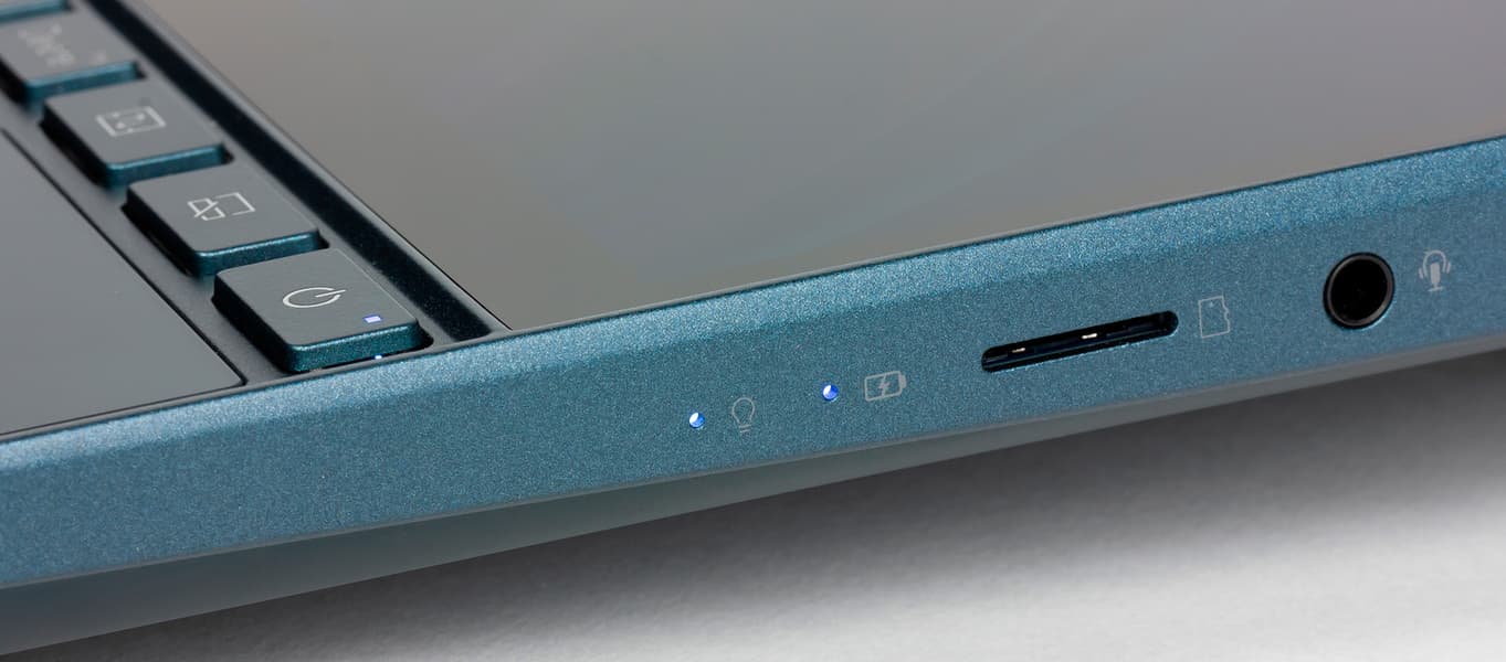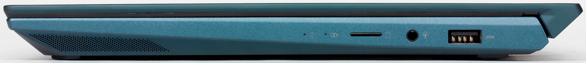 Справа размещены два индикатора (заряда и питания), слот для карточки microSD, комбинированный разъем для подключения микрофона/наушников и еще один USB 3.2 Type-A, только теперь Gen1.