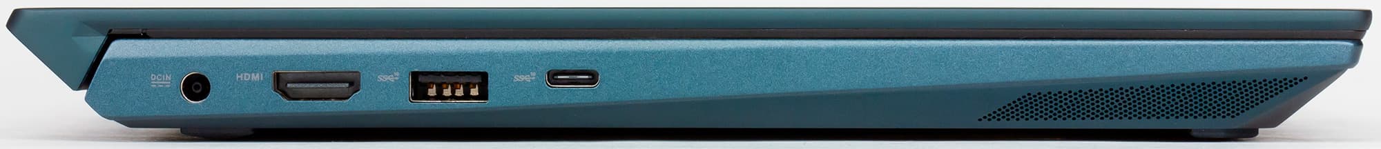 На левый торец выведены разъем питания, видеовыход HDMI версии 2.0, а также порты USB 3.2 Gen2 (Type-C и Type-A).
