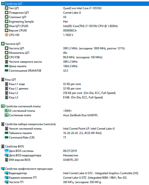 | Процессор | Intel Core i7-10510U (Comet Lake-U, 1,8 ГГц (с Turbo Boost до 4,9 ГГц), 4 ядра/8 потоков, кэш 8 МБ, TDP до 25 Вт) | |