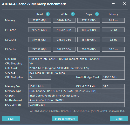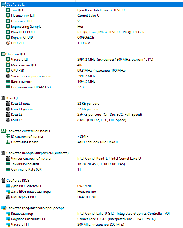 В плане оперативной памяти возможны варианты Asus ZenBook Duo UX481F с 8 или 16 ГБ, но это всегда будет DDR3. В предоставленной нам на тестирование версии ноутбука распаяно 16 ГБ памяти в четырех микросхемах Micron с маркировкой 9RB47 D9SVW.