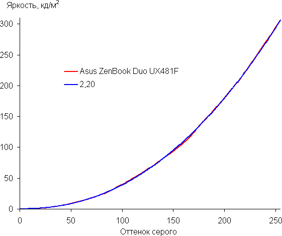 Аппроксимация полученной гамма-кривой дала показатель 2,20, что в точности равно стандартному значению, при этом реальная гамма-кривая чуть-чуть отклоняется от аппроксимирующей степенной функции: