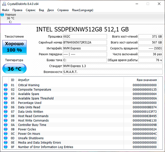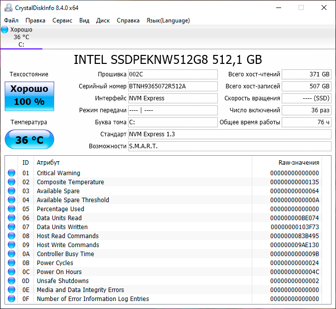 | Накопитель | 1 × SSD 512 ГБ (Intel 660p SSDPEKNW512G8, M.2 2280, PCIe 3.0 x4) | |