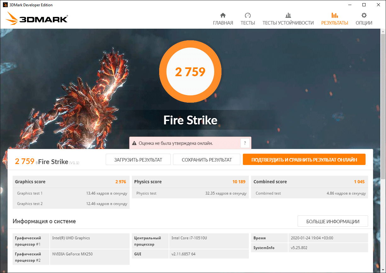 Производительность Asus ZenBook Duo UX481F мы проверили в семи бенчмарках и двух играх при работе от электросети и от аккумулятора. Разницу в производительности ноутбука вы можете видеть на приведенных скриншотах.