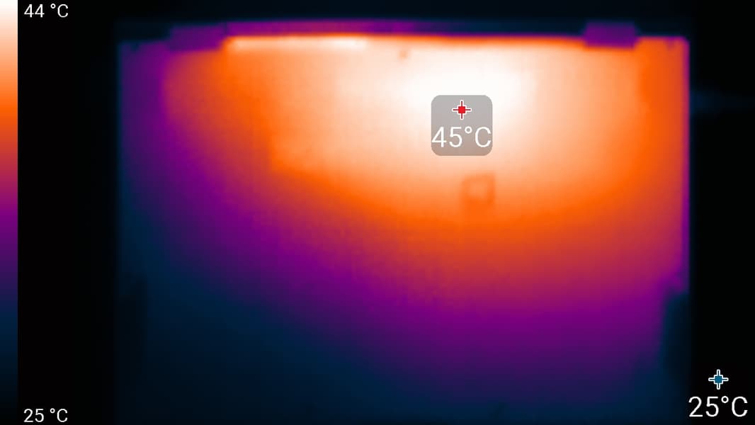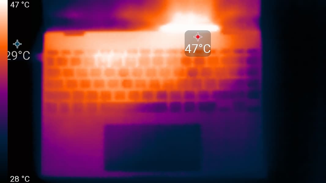 Ниже приведены термоснимки, полученные после долговременной работы ноутбука под максимальной нагрузкой на CPU и GPU (профиль высокой производительности):