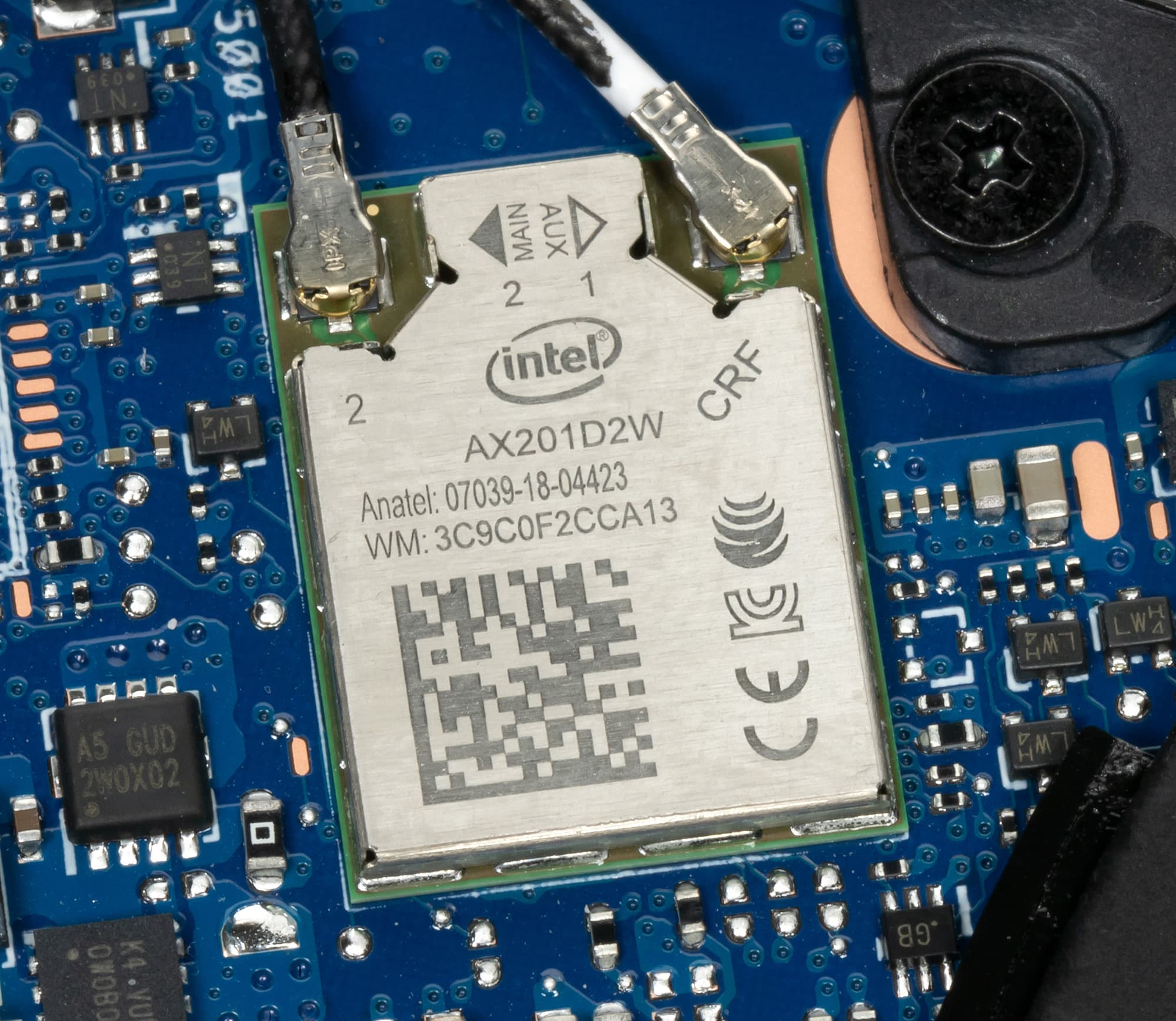| Беспроводная сеть | Intel Wi-Fi 6 AX201D2W (802.11ax, MIMO 2×2, 2,4 ГГц и 5 ГГц, 160 МГц) | |
