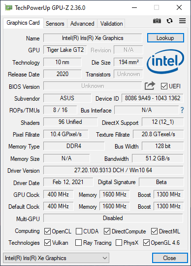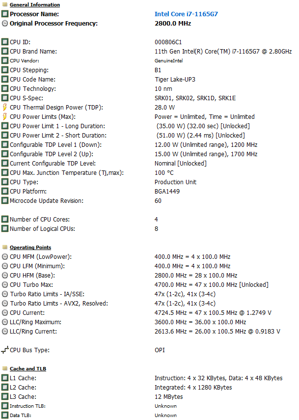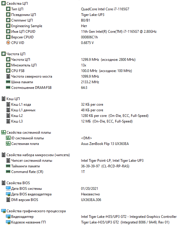 | Чипсет | Intel Tiger Lake-UP3 PCH-LP | |