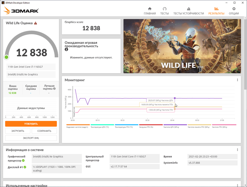 Производительность встроенного в процессор графического ядра ультрабука нам продемонстрируют результаты бенчмарков 3DMark и World of Tanks RT.