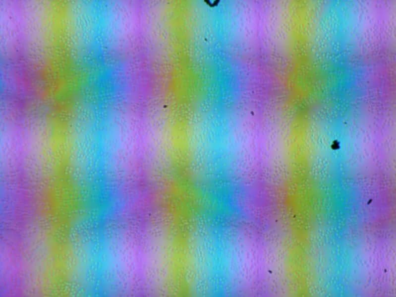 Фокусировка на слоях выше выявила хаотично расположенные микродефекты поверхности, то есть на самом деле матрица под стеклом слегка матовая, что повышает засветку экрана за счет диффузного отражения: