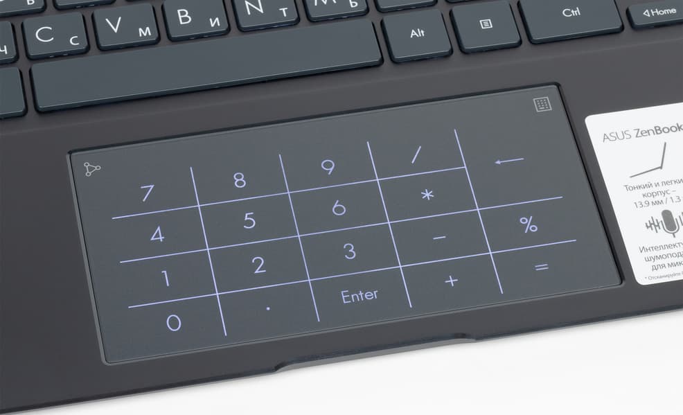 Благодаря интеллектуальному алгоритму управления NumberPad позволяет работать как с классическим тачпадом даже при включении цифровой клавиатуры. Во время работы при активированном цифровом блоке можно перемещать курсор, никаких конфликтов с вводом цифр замечено не было.