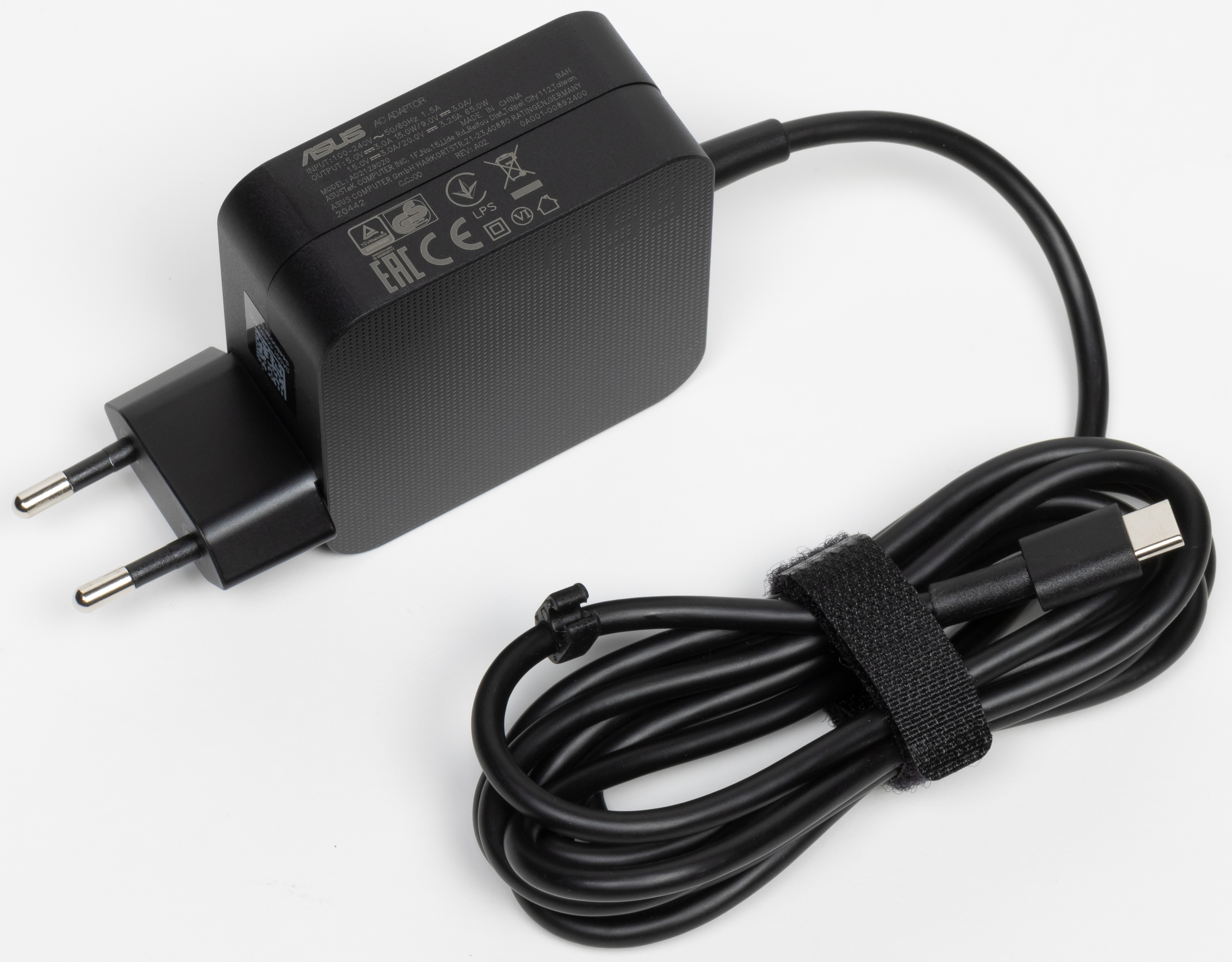 Asus ZenBook Flip 13 UX363EA комплектуется адаптером питания AD2129020 мощностью 65 Вт (20 В, 3,25 А) с массой 220 г и встроенным кабелем длиной 1,95 м.