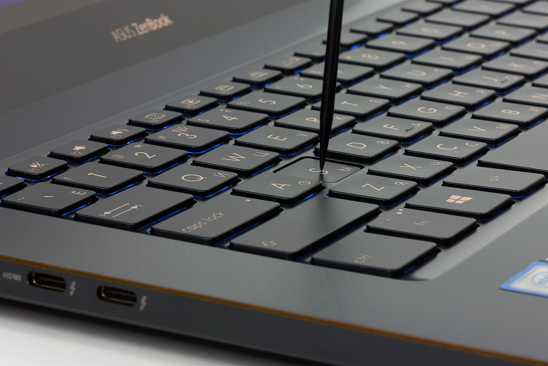 Стоит также отметить наличие сканера отпечатка пальцев с поддержкой функции Windows Hello, который расположен справа от скринпада.