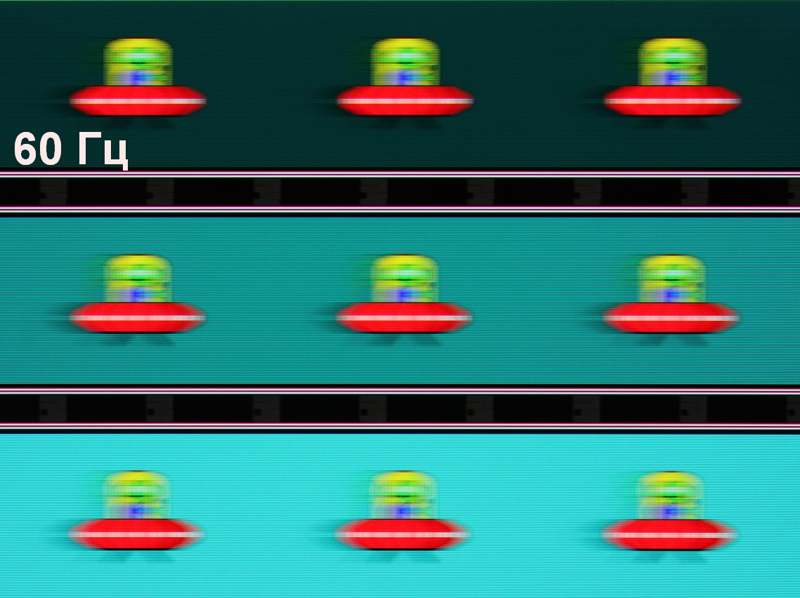 Видно, что на высокой и средней яркости скважность модуляции низкая, в итоге видимого мерцания нет. Однако при очень сильном понижении яркости появляется модуляция с большой относительной амплитудой и высокой скважностью, ее наличие уже можно увидеть в тесте на присутствие стробоскопического эффекта или просто при быстром движении глаз. В зависимости от индивидуальной чувствительности такое мерцание может вызывать повышенную утомляемость. Впрочем, фаза модуляции различается по площади экрана, а частота довольно высокая, поэтому негативный эффект от мерцания снижен. К тому же, 10% — это всего 14 кд/м², что очень тускло даже для работы в полной темноте. И даже при 25%, когда мерцания уже не видно в принципе, яркость также невысокая — 26 кд/м². В итоге по факту в рабочем диапазоне яркости мерцания нет.