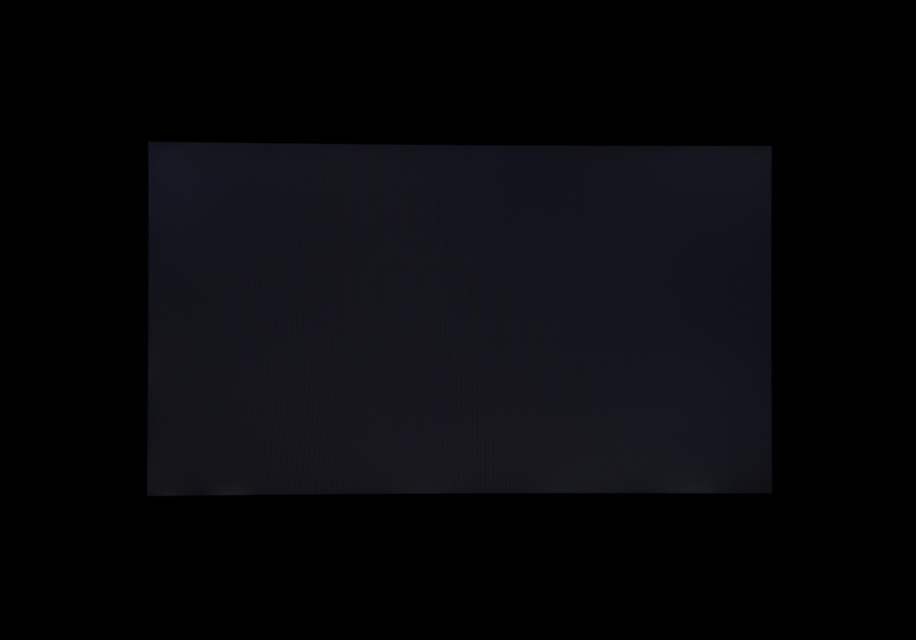 Видно, что у самых краев черное поле местами немного высветляется. Отметим, что жесткость конструкции экрана довольно высокая, непосредственно во время изменения угла наклона заметная деформация и вызванное ею увеличение засветки черного есть только непосредственно в районе шарнира.