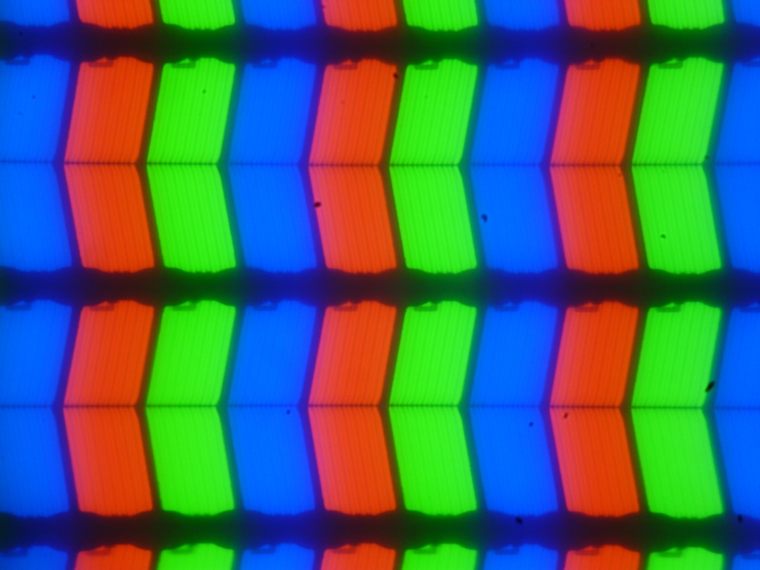Микрофотографии демонстрируют типичную для IPS структуру субпикселей (черные точки — это пыль на матрице фотоаппарата):