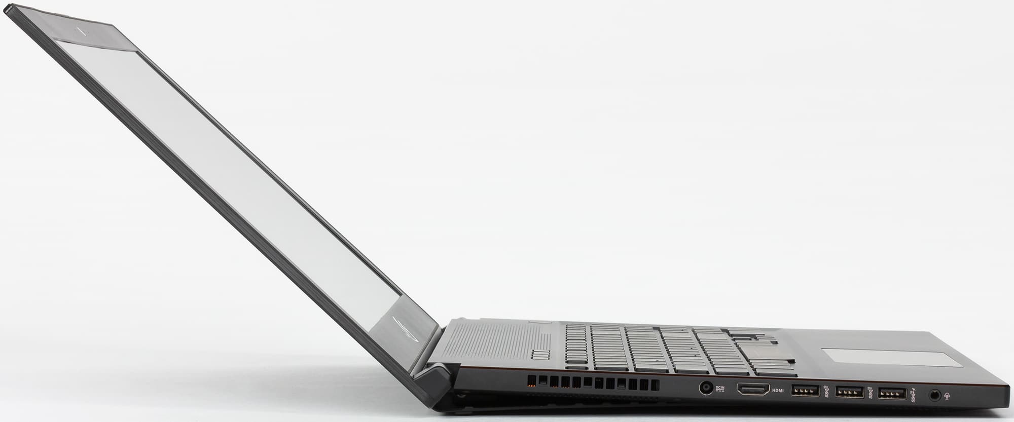 Как и в случае ноутбука Asus ROG Zephyrus, одна из главных особенностей Asus ROG Zephyrus M заключается в его очень тонком (для игровой модели) корпусе. Толщина корпуса этого ноутбука не превосходит 19,9 мм, а масса составляет всего 2,45 кг.