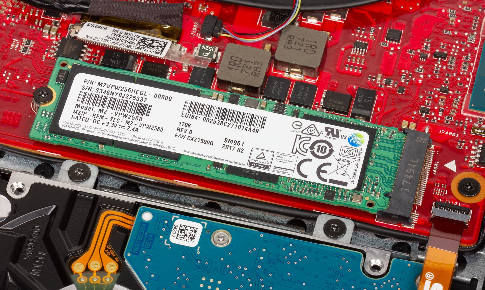 Подсистема хранения данных ноутбука Asus ROG Zephyrus M GM501GM представляет собой комбинацию SSD-накопителя Samsung MZVKW256HEGL объемом 256 ГБ и HDD Seagate ST1000LX015-1U7172 объемом 1 ТБ.