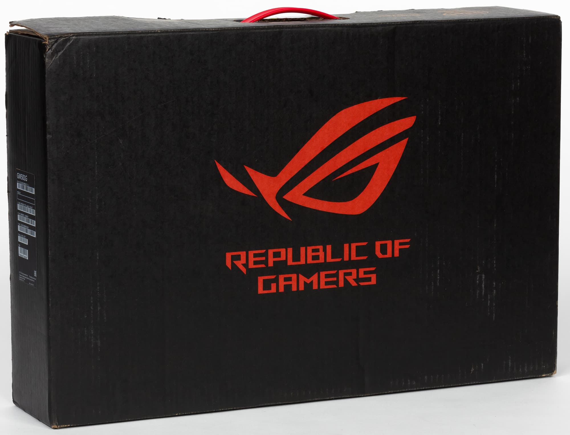 Ноутбук Asus ROG Zephyrus M GM501GM поставляется в большой невзрачной картонной коробке черного цвета с ручкой.