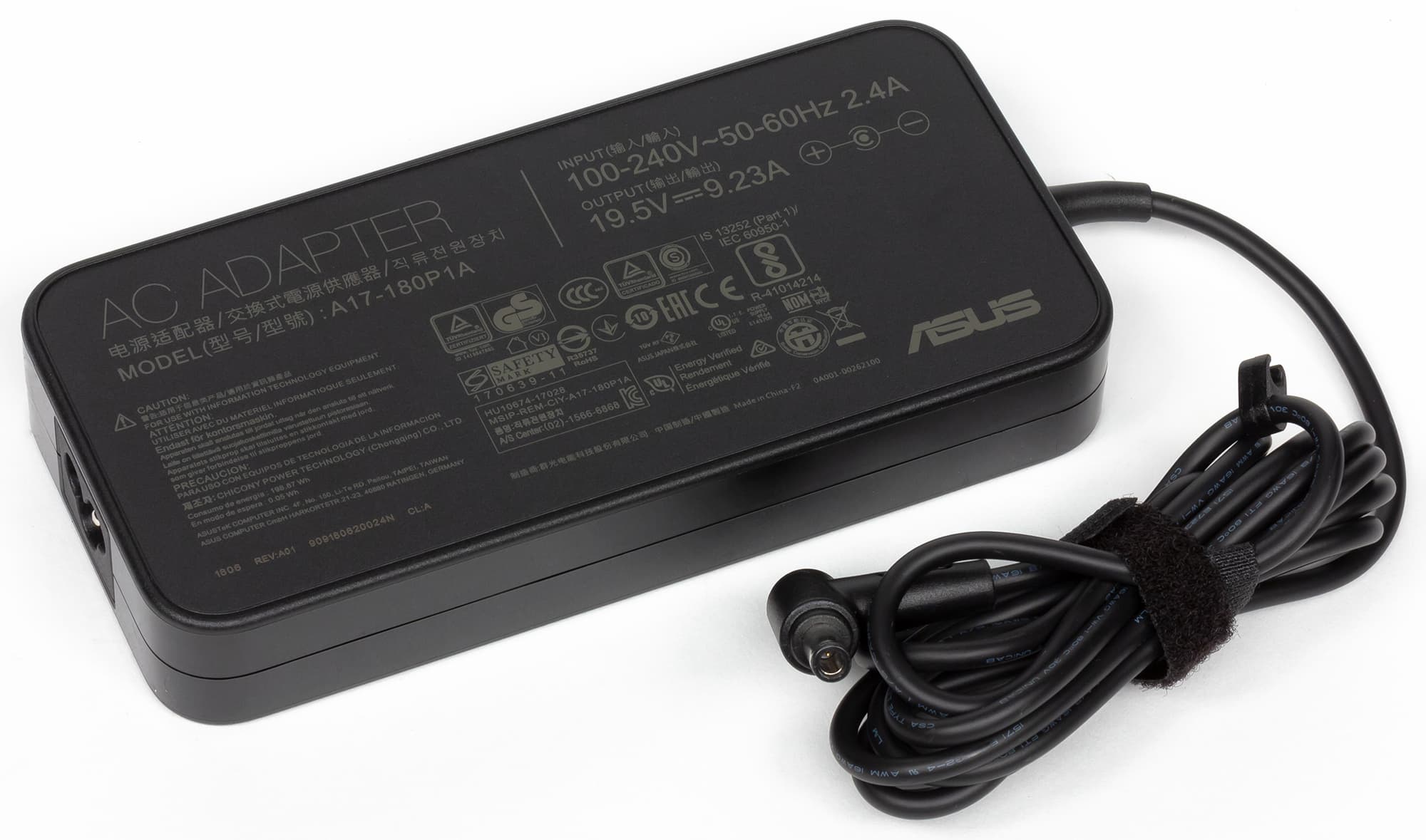 Кроме самого ноутбука в комплект поставки входит адаптер питания мощностью 180 Вт (19,5 В; 9,23 A).
