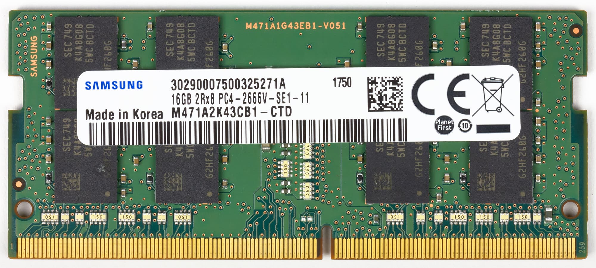 В нашем варианте в ноутбуке был установлен только один модуль памяти DDR4-2666 Samsung M471A2K43CB1-CTD емкостью 16 ГБ.