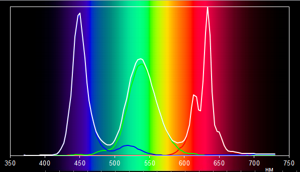 Светофильтры ЖК-матрицы здесь очень хорошие. Спектры основных цветов (зеленого, красного и синего) почти не перекрываются, что крайне редко встречается в ЖК-матрицах ноутбуков