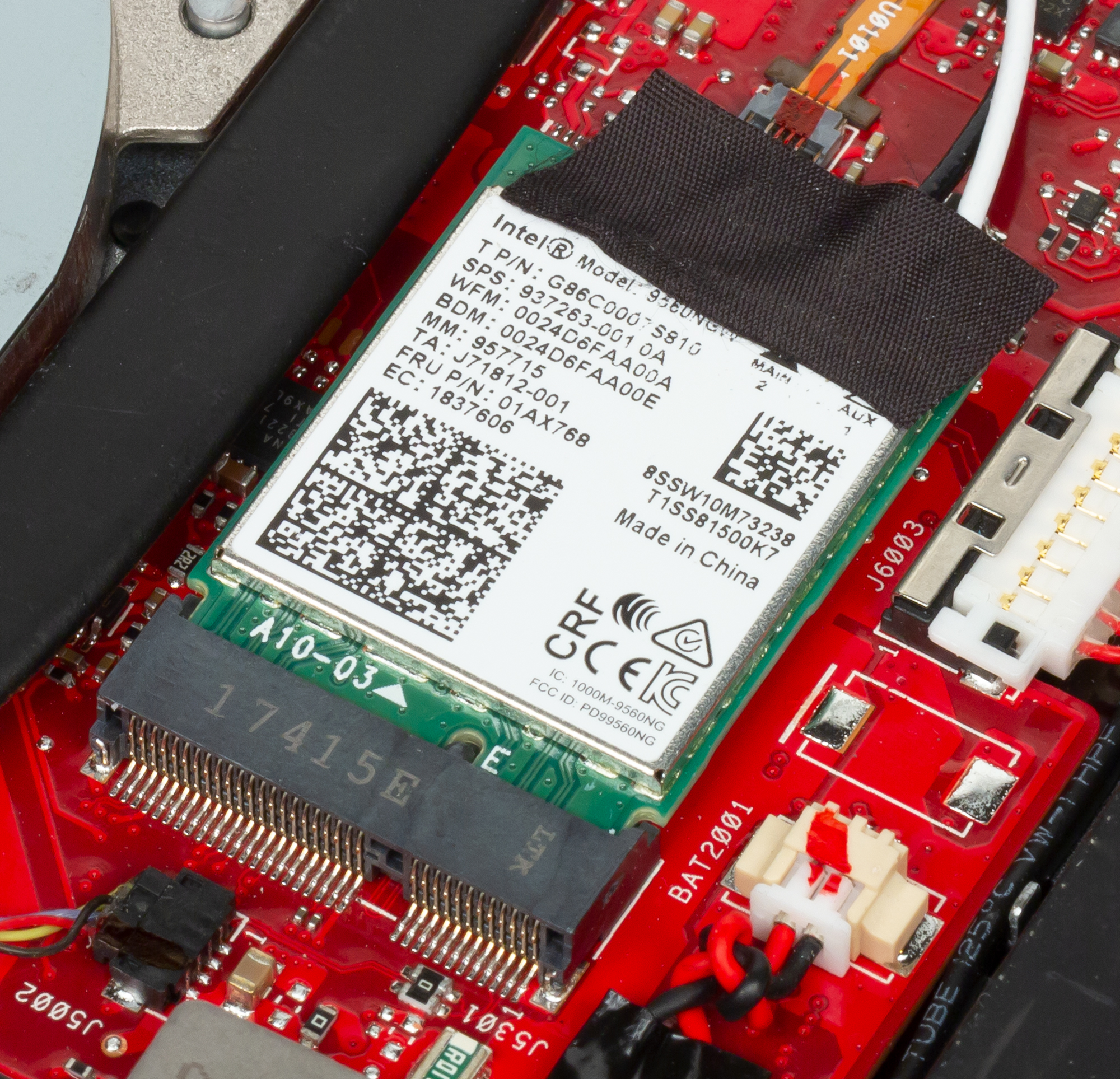 Коммуникационные возможности ноутбука определяются наличием беспроводного двухдиапазонного (2,4 и 5 ГГц) сетевого адаптера Intel Wireless-AC 9560 (CNVi), который соответствует спецификациям IEEE 802.11a/b/g/n/ac и Bluetooth 5.0.