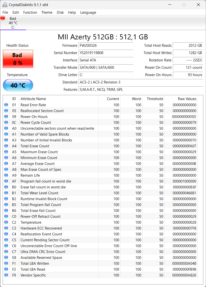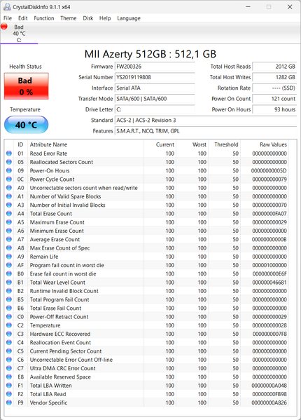 Кстати, при проверке утилитой CrystalDiskInfo SATA-устройство в составе Azerty RB-1650 демонстрирует неожиданность: