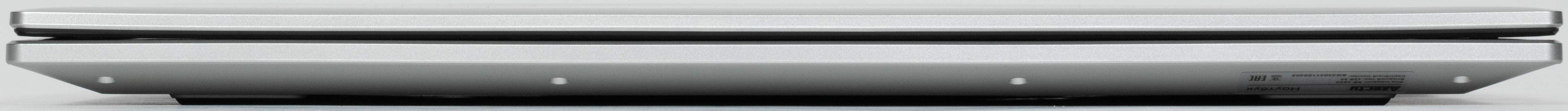 Максимальный угол раскрытия составляет 180°. В закрытом состоянии крышка удерживается только за счет петель и доводчика. Раскрыть ноутбук одной рукой не удается: корпус упорно следует за крышкой и устройство приподнимается над поверхностью стола.