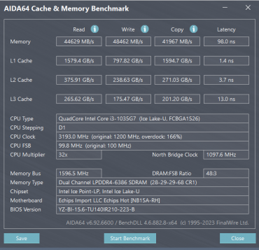 Что ж, ОЗУ у героя обзора не отличается высоким быстродействием и уступает обоим конкурентам. Наилучшие результаты демонстрирует DDR4-3200 в ноутбуке Tanshi M15C.
