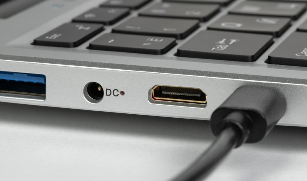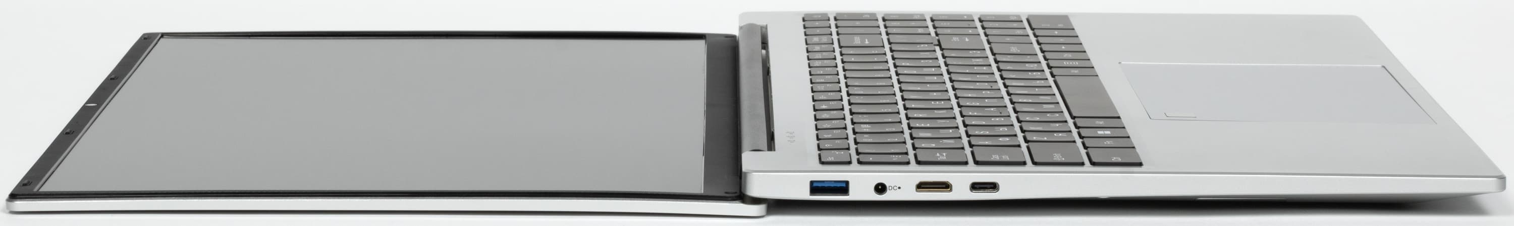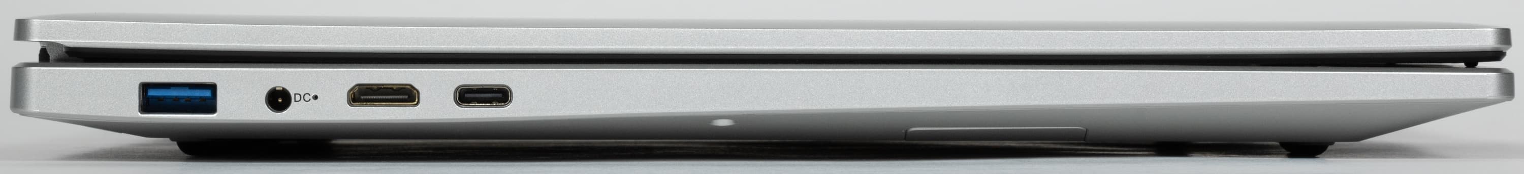 На левой боковой панели помещаются порт USB 3.0 Type-A, коаксиальный разъем для подключения адаптера питания, видеовыход HDMI и порт USB 3.2 Gen1 Type C.