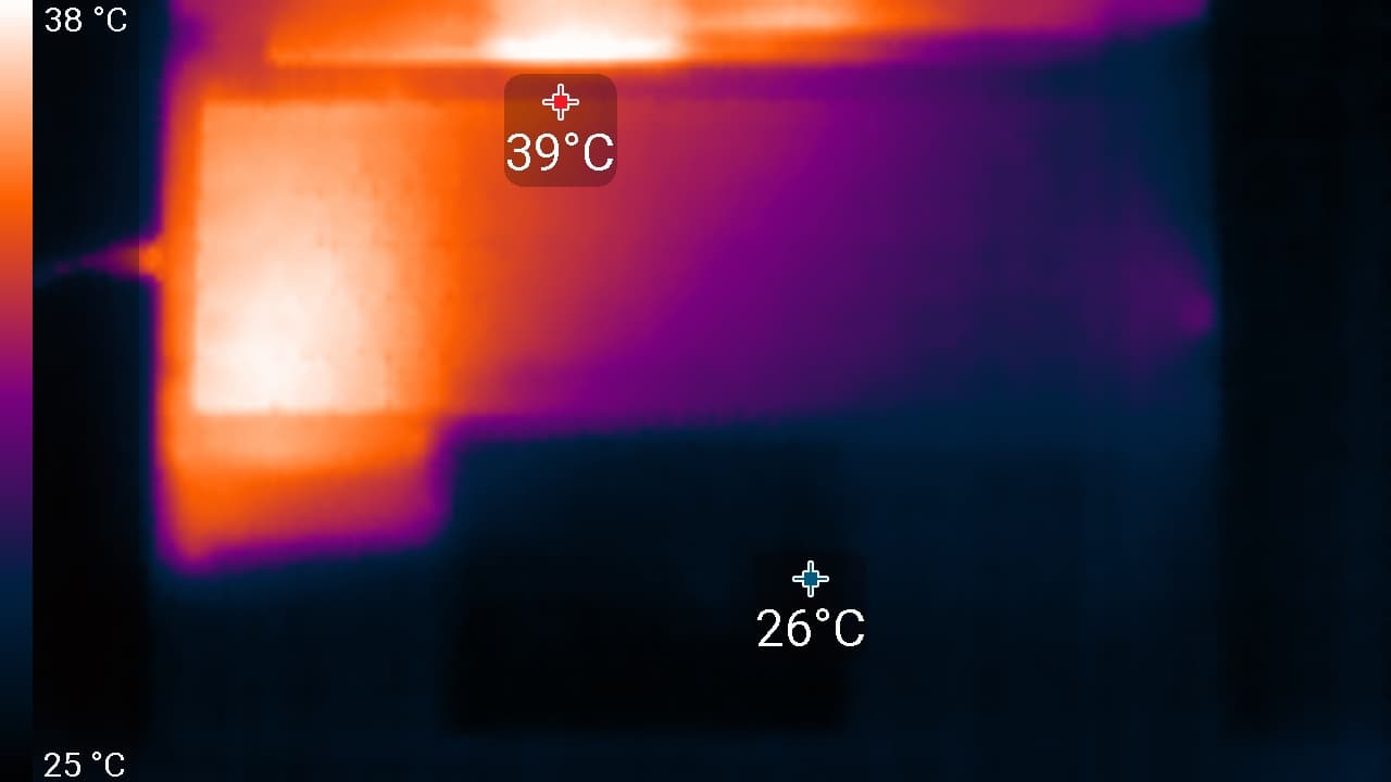 Под максимальной нагрузкой работать с клавиатурой не совсем комфортно, так как существенно нагревается место под левым запястьем. Держать ноутбук на коленях также неприятно, поскольку нагрев днища левое колено очень хорошо чувствует. Блок питания греется не очень сильно, но все равно при долговременной работе с большой производительностью лучше следить, чтобы он не был ничем накрыт.