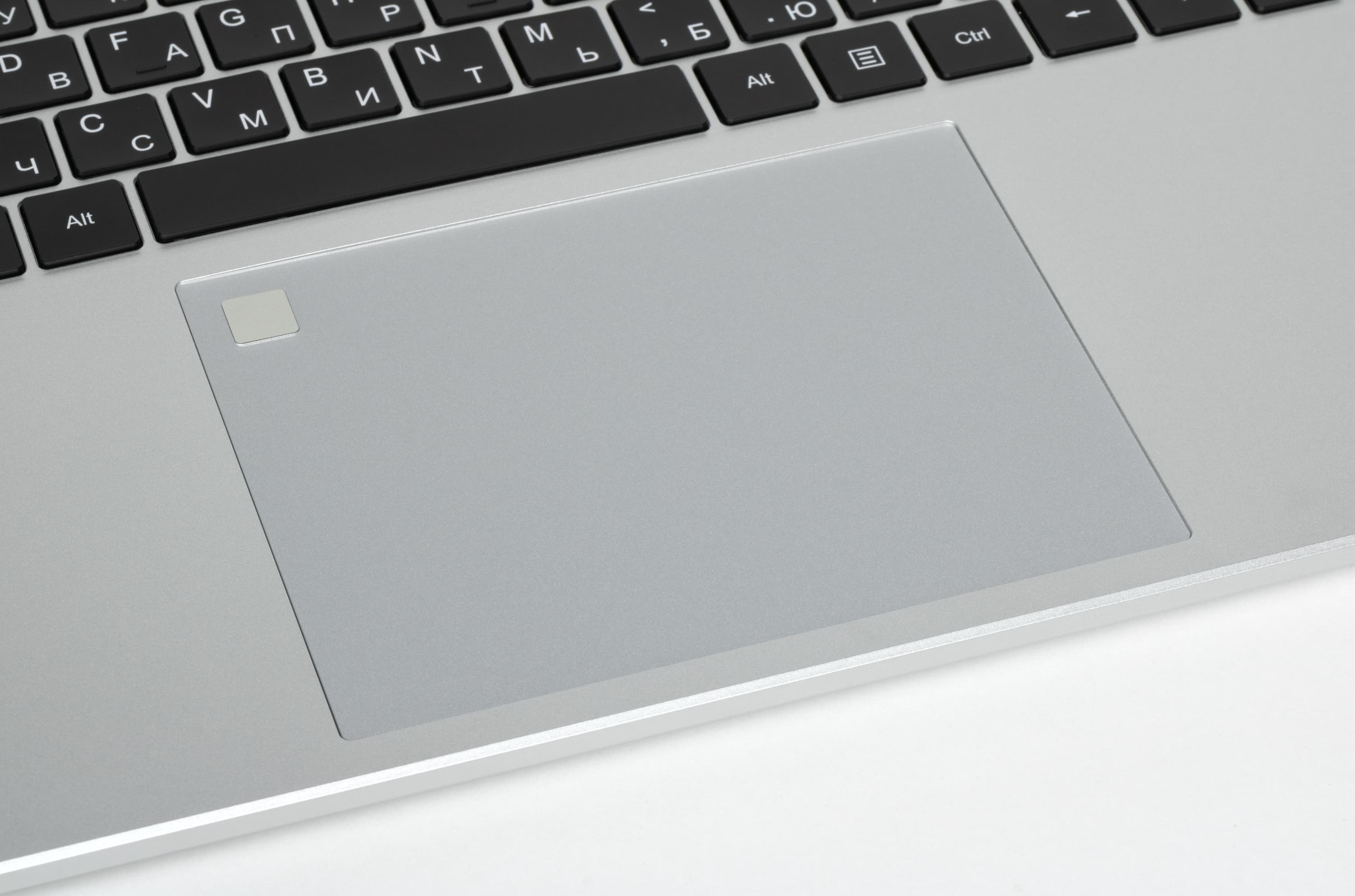 В дальнем левом углу тачпада размещен дактилоскопический сканер для идентификации пользователя простым прикосновением.
