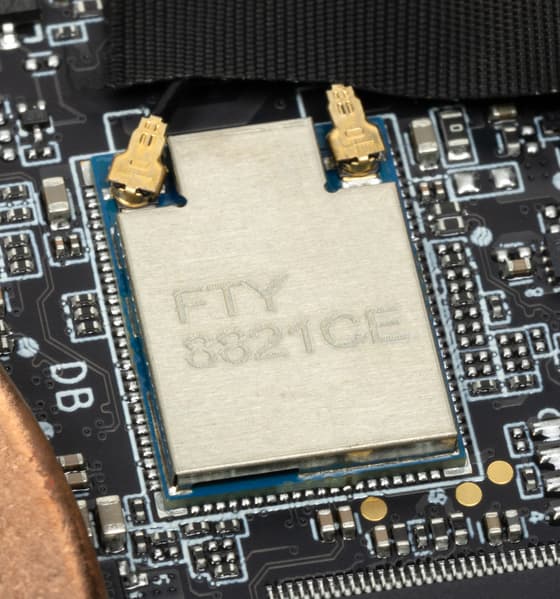 Беспроводную связь обеспечивает адаптер Realtek 8821CE, соответствующий классу Wi-Fi 5, с поддержкой стандартов 802.11ac и схемой работы 1T1R. Устройство безнадежно устаревшее, однако заменить его чем-либо более современным нельзя, поскольку оно распаяно на плате.