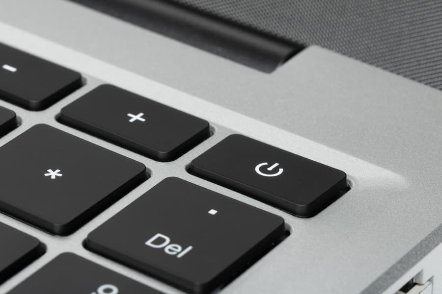 Кнопка выключателя питания расположена в верхнем ряду клавиатуры крайней справа. По форме и размерам она повторяет соседей слева, поэтому при работе вслепую ее можно перепутать с другими и нажать по ошибке.