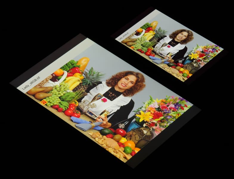 Компоненты хорошо разделены, что позволяет достигнуть широкого цветового охвата. Отметим, что на экранах с широким цветовым охватом без соответствующей коррекции цвета обычных изображений, оптимизированных для устройств sRGB, выглядят неестественно насыщенными.