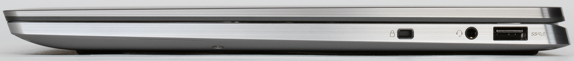 На правом боку можно найти отверстие клинового замка, единственный порт USB Type-A (3.0) с функцией зарядки мобильных устройств даже от выключенного ноутбука и универсальный миниджек для подключения микрофона/наушников/гарнитуры. На левом боку есть видеовыход HDMI 2.0, 2 порта Thunderbolt 3/USB 3.1 Type-C с поддержкой DisplayPort и Power Delivery, они же разъемы питания, а также картовод для карточек microSD.