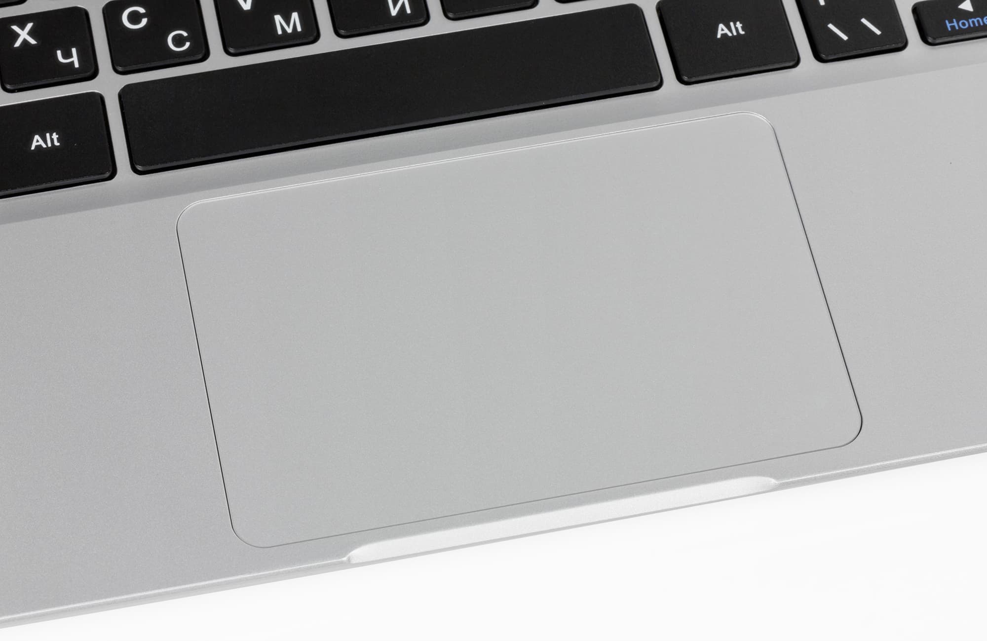 Сенсорная поверхность тачпада немного заглублена. Глубина нажатия на кликпад составляет всего 0,2 мм. Кликпад поддерживает функцию мультитач.