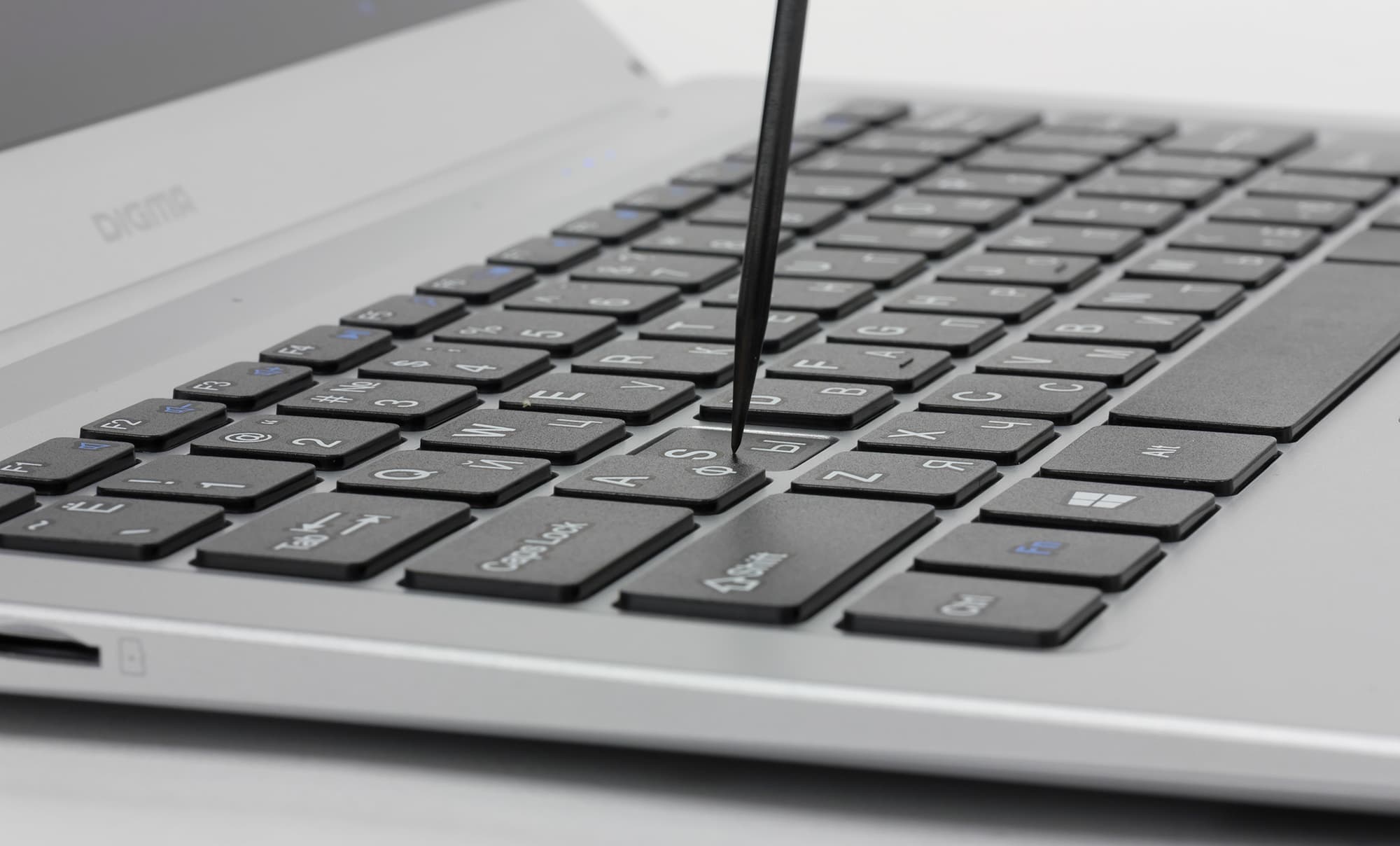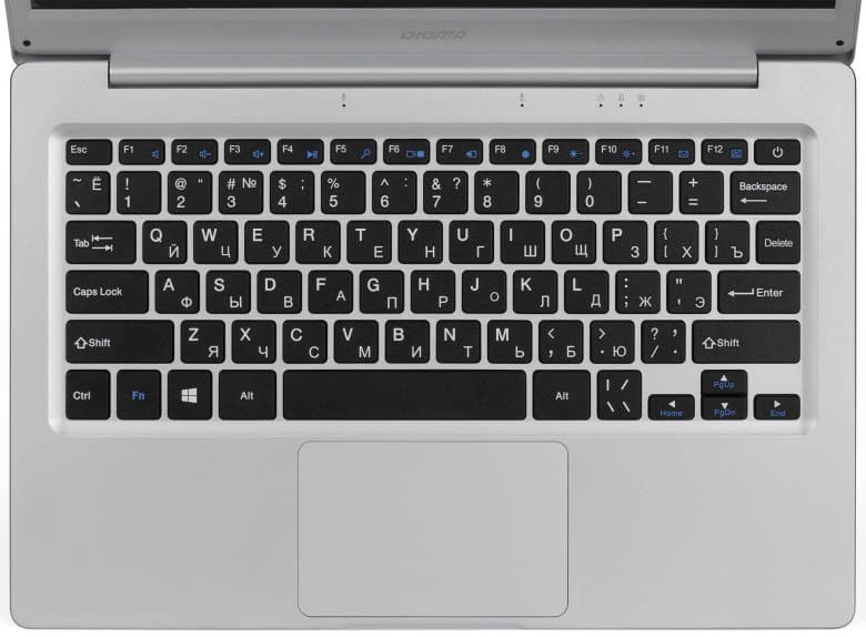 В ноутбуке Digma Eve 300 используется клавиатура островного типа с увеличенным расстоянием между клавишами.