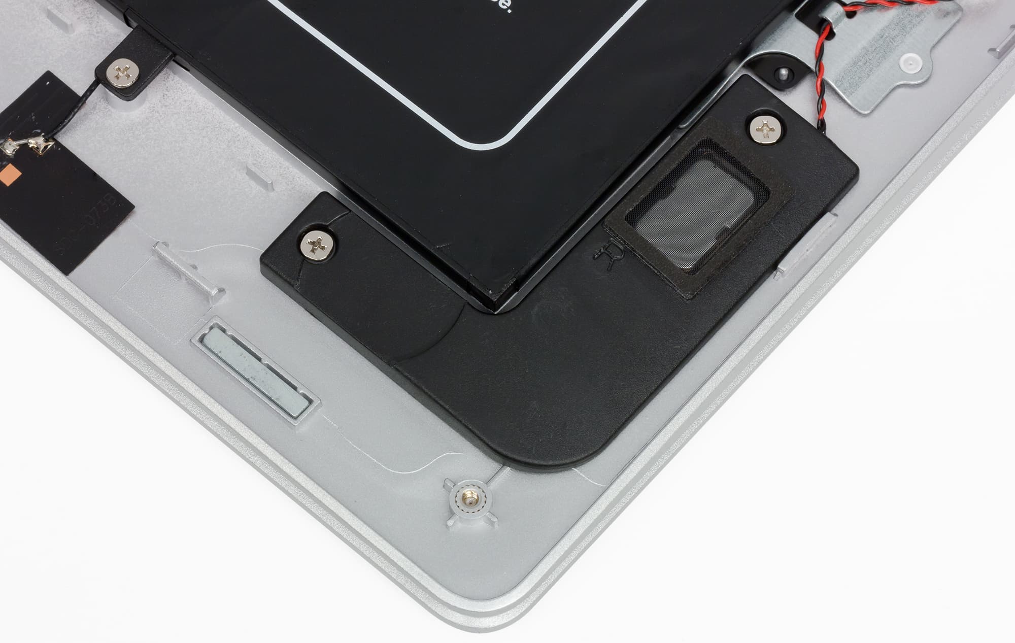 Аудиоподсистема ноутбука (Intel SST Audio Device) является составной частью платформы Cherry Trail. В корпусе ноутбука установлены два миниатюрных динамика.