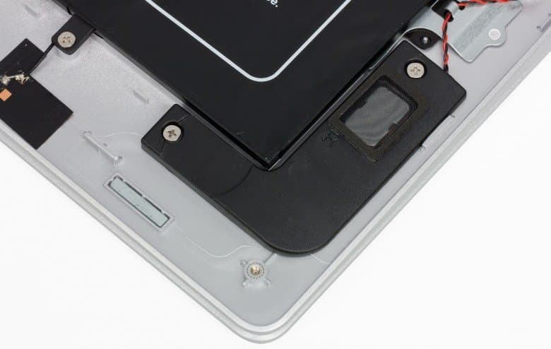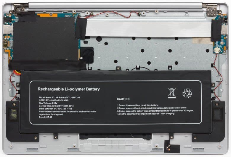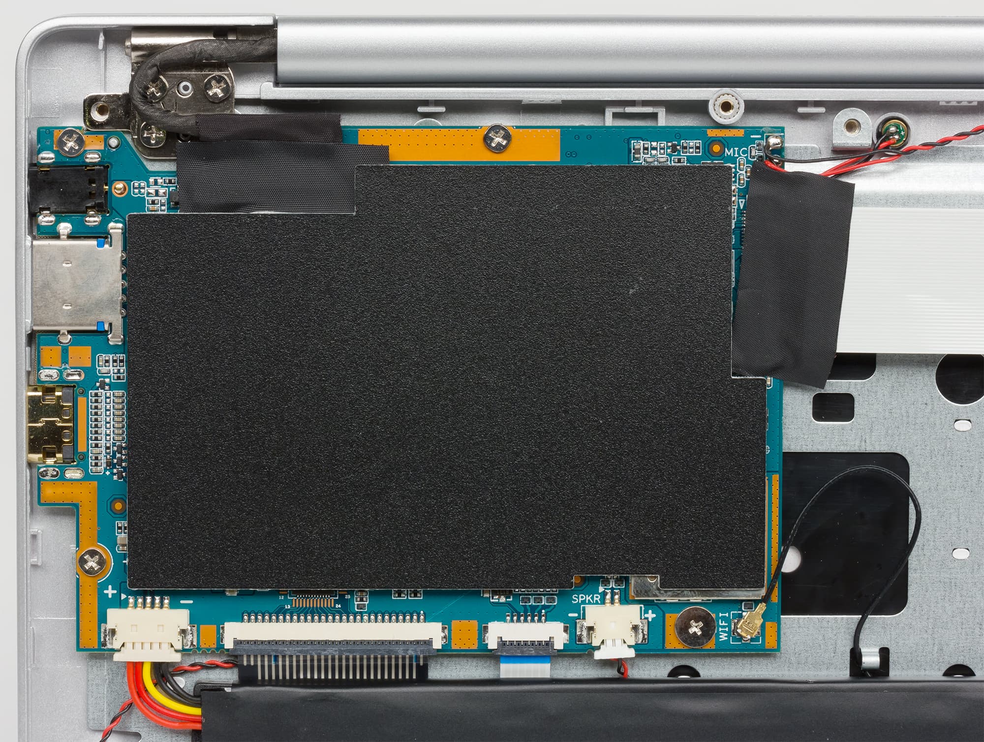 Открыв ноутбук, можно обнаружить, что системная плата занимает примерно одну шестую часть пространства. Еще половина пространства – это аккумуляторная батарея.