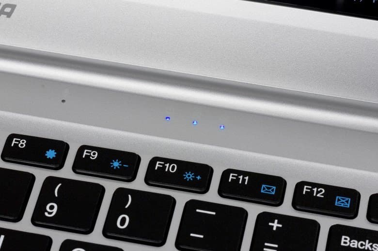 Есть три миниатюрных индикатора состояния ноутбука, которые располагаются над клавиатурой.
