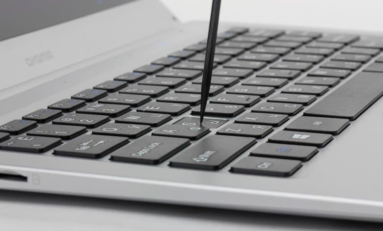 Клавиши на клавиатуре имеют размер 15,5×15,5 мм, а расстояние между ними составляет 3 мм. Ход клавиш (глубина нажатия) равен 1,5 мм.