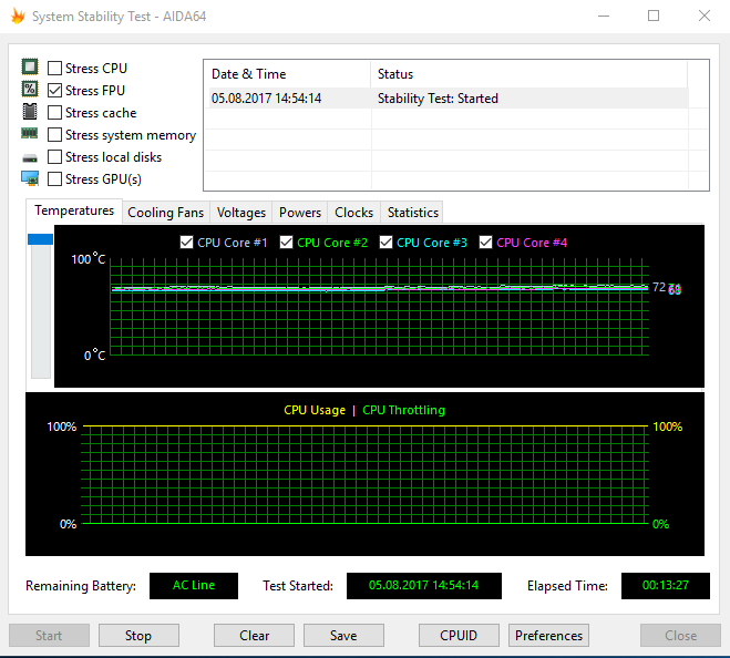 Температура ядер процессора в этом случае увеличивается до 72 °С.
