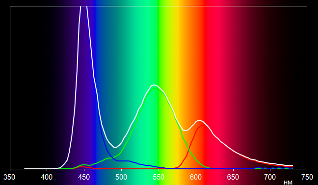 Светофильтры ЖК-матрицы неплохо изолируют основные цвета.