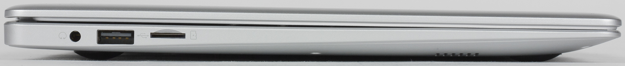 На левом торце корпуса расположен разъем порта USB 2.0, аудиоразъем типа миниджек для подключения наушников и слот для карт памяти microSD.