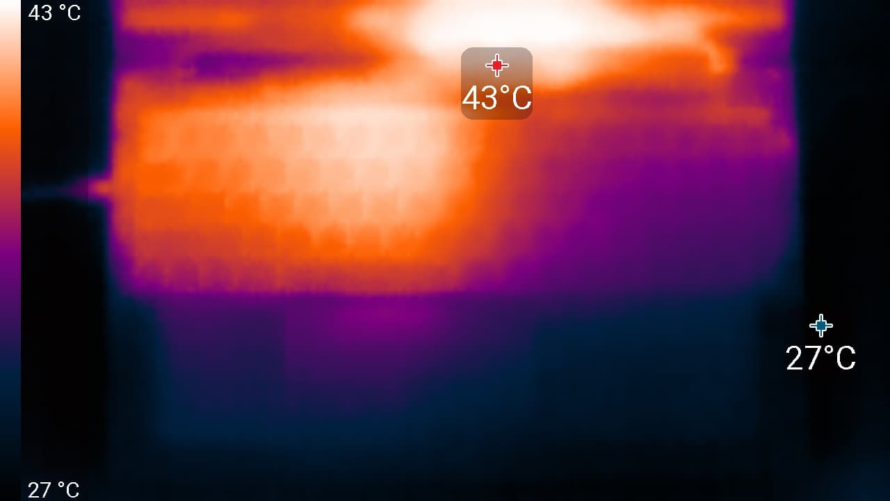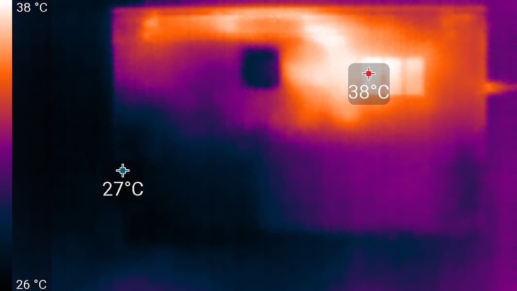 В середине заднего торца корпуса есть ряд более крупных отверстий, через которые система вентиляции выбрасывает нагретый воздух. Как часто бывает в подобных конструкциях, получается подогрев нижней части экрана, во время запуска «тяжелых» тестов выяснилось: ощутимый, но не критический.