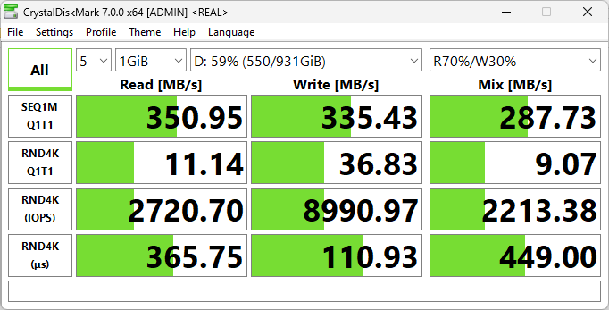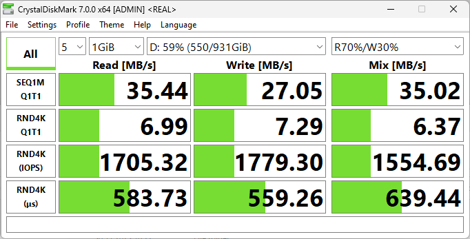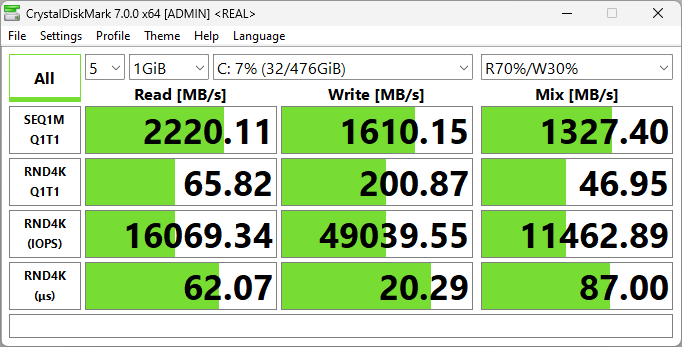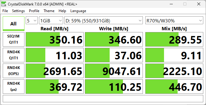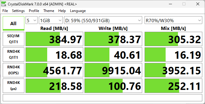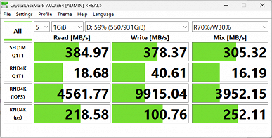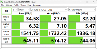 Предлагаем сравнить с результатами тестов еще двух SSD — Yangtze Memory PC300-1TB-B PCIe 4.0 ×4 (ноутбук Honor MagicBook Pro 16 DRA-54) и Western Digital PC SN540 512 ГБ PCIe 3.0 ×4 (Maibenben P625).