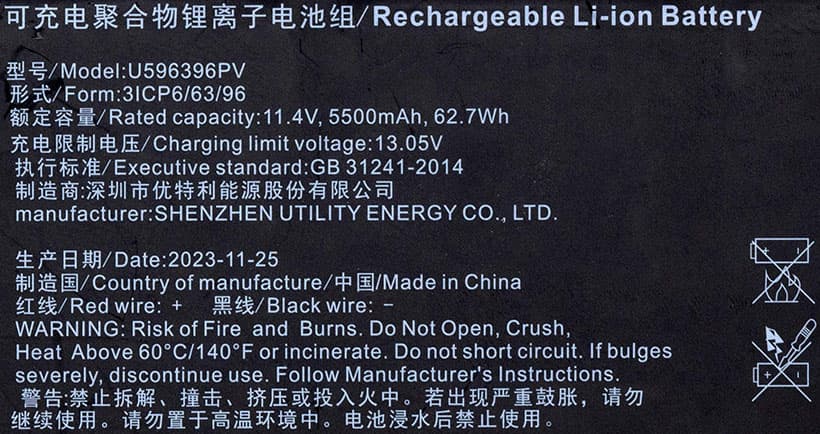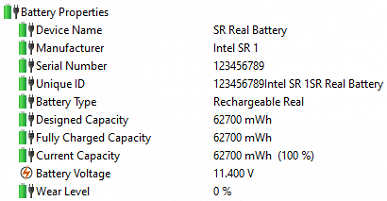 | Батарея | 62,7 Вт·ч, литий-ионная | |